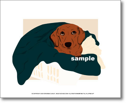 This red dachshund simply can not resist the tantalizing warmth and snuggly fresh smell of a basket of clean laundry.