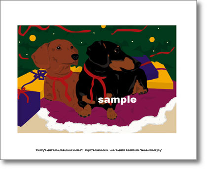 These two dachshund pals want to make sure that they get to see Santa Claus. Red and Black/Tan dachshund waiting under Christmas tree among gifts and presents.