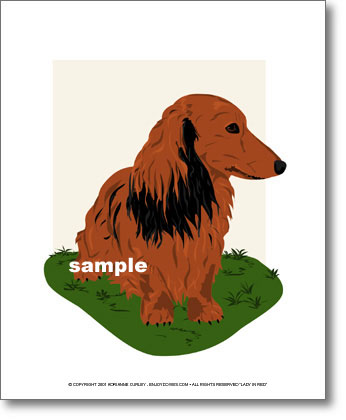 Elegant and beautiful, a Lady in Red. This dachshund proudly displays a long and silky multi-colored coat.