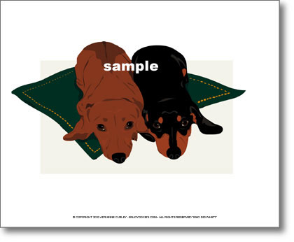 The troublesome dachshund duo is up to their old tricks. Our favorite red and black/tan doxies look guilty of something, but they're not giving anything away.